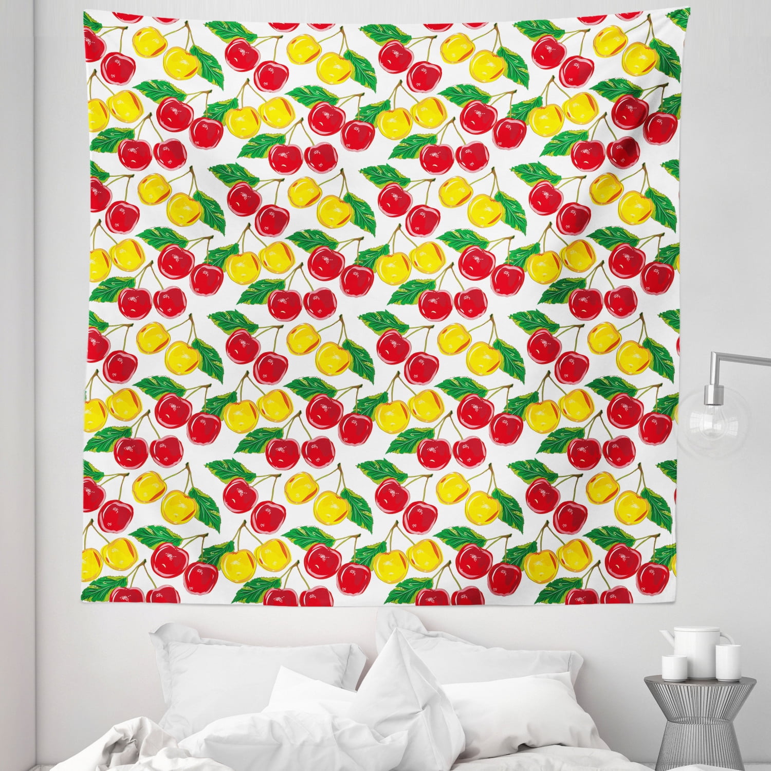Fruit Tapestry Graphic Colorful Cherries With Leaves Pattern Fresh Ripe Juicy Tasty Summertime Fabric Wall Hanging Decor For Bedroom Living Room Dorm 5 Sizes Red Yellow Green By Ambesonne Walmart Com